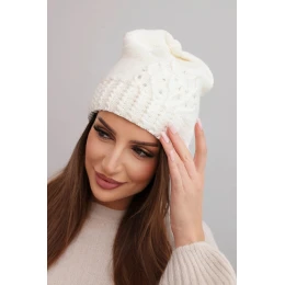 Dámska zimná čiapka s vlnou zdobená flitrami a pleteninou K473 ecru