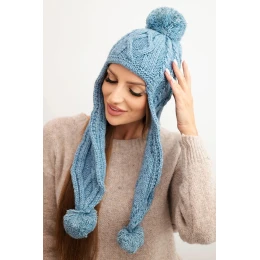 Roztomilá dámska čiapka ideálna na zimné dni. Model s klasickým úpletom a ozdobnou bambulou na vrchnej časti, vybavený aj predĺženými bokmi ukončenými bambuľkami - nielenže vyzerá efektne, ale aj účinne chráni pred chladom. Predĺžené boky možno nechať voľne alebo zaviazať pod bradou, aby poskytovali ešte viac tepla.