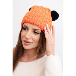 Dámska zimná vlnená čiapka s bambulou K433 oranžová