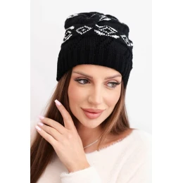 Dámska zimná vlnená čiapka s geometrickým vzorom K434 black + white