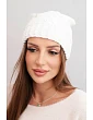 Dámska zimná vlnená čiapka s ozdobným potlačou K474 ecru