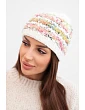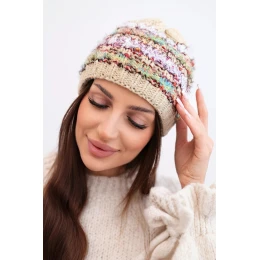 Dámska zimná čiapka s farebným vláknom a elastickou šnúrkou K352 beige