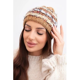 Dámska zimná čiapka s farebným vláknom a elastickou šnúrkou K352 camel