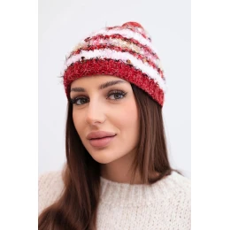 Dámska zimná čiapka s farebnou priadzou a elastickou šnúrkou K352 bordová