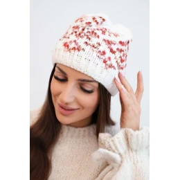 Pridanie recenzie k Dámska zimná čiapka s farebnými vzormi a hrubým nákrčníkom K353 biela+červená