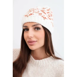 Dámska zimná čiapka s farebnými vzormi a hrubým úpletom K353 white+orange