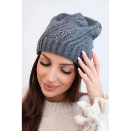 Dámska zimná vlnená čiapka s geometrickým vzorom a jemným leskom K401 tmavosivá