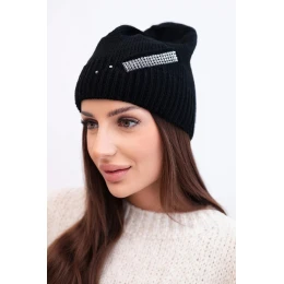 Dámska zimná vlnená čiapka s ozdobným zirkónovým pásom K402 čierna