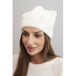 Dámska zimná vlnená čiapka s ozdobnými kryštálmi K461 ecru