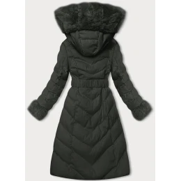 Dámská zimní bunda v army barvě s páskem model 21246690 - J.STYLE
