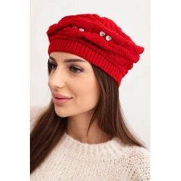 Dámská zimní čepice s ozdobným pletením a krystalky model 21878105 červená - K-Fashion