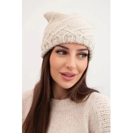 Dámská zimní čepice s ozdobným pletením a střihem béžová model 21878057 - K-Fashion