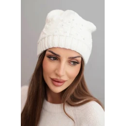 Dámská zimní čepice s vlnou a ozdobným pletením s perličkami model 21783059 ecru - K-Fashion