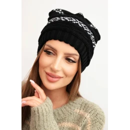Dámska zimná čiapka so vzorom a vlnou K425 black