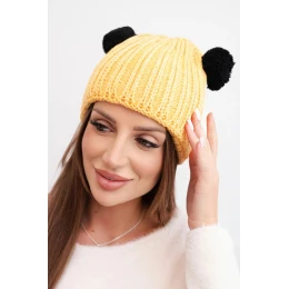 Dámská zimní čepice vlněná s bambulí model 21817789 žlutá - K-Fashion
