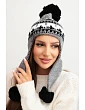 Teplá zimná čiapka s nápaditým vzorom a tromi mäkkými bambuľkami - na vrchnej časti a na koncoch uší. Dokonale chráni pred chladom, zároveň zakrýva uši. Ideálna na prechádzky, zimné výlety a každodenný styling.