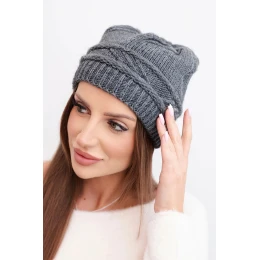 Dámská zimní čepice z vlny a s pleteným vzorem model 21817815 grafitová - K-Fashion