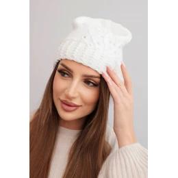Stylová a elegantní dámská čepice ideální na chladnější dny. Vyrobena z teplé a měkké pleteniny s přídavkem přírodní vlny, dokonale chrání před zimou, zároveň zdůrazňuje ženský styl. Ozdobné detaily z lesklých flitrů a jemný vzor dodávají čepici kouzlo a výjimečný charakter.