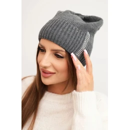 Dámská zimní čepice z vlny s krystaly model 21750400 grafitová - K-Fashion