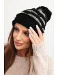 Dámska zimná pletená čiapka s bambulou a pleteným vzorom K466 čierna