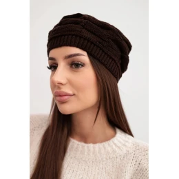 Dámská zimní čepice z vlny s ozdobným pletením a hnědá model 21878089 - K-Fashion