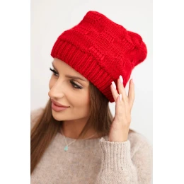 Dámská zimní čepice z vlny s ozdobným pletením model 21782963 červená - K-Fashion