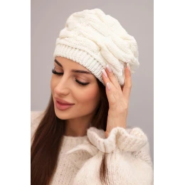 Dámská zimní čepice z vlny s ozdobným vzorem a kamínky model 21878083 ecru - K-Fashion