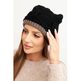 Dámská zimní čepice z vlny s vzorem černá + cappuccino model 21782989 - K-Fashion