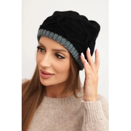 Dámská zimní čepice z vlny s vzorem černá + šedá model 21782991 - K-Fashion