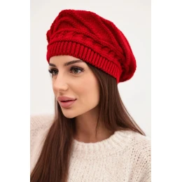 Dámská zimní čepice z vlny volného střihu s ozdobným pletením model 21878063 červená - K-Fashion