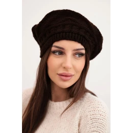Dámská zimní pletená čepice volného střihu s ozdobným vzorem model 21878079 hnědá - K-Fashion