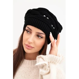 Dámská zimní vlněná čepice s ozdobnými krystalky K399 černá