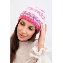 Dámska zimná čiapka s farebným vláknom a elastickou šnúrkou K352 malinová