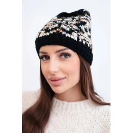 Dámska zimná vlnená čiapka s nórskym vzorom K354 black+beige