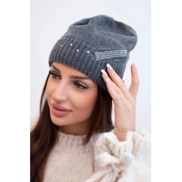Dámska zimná vlnená čiapka s kryštálovým pásom K402 graphite