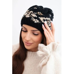 Dámska zimná vlnená čiapka s ozdobnými kryštálmi K399 čierna