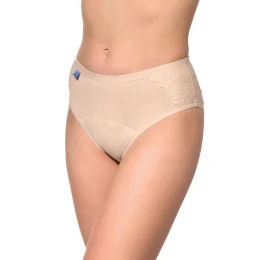 Tieto dámske absorpčné nohavičky sú ideálnym riešením pre inkontinentné ženy, ktoré si cenia funkčnosť aj estetiku. Sú vyrobené z antibakteriálnej, priedušnej bavlny s elastanom a zaručujú pohodlie a sviežosť počas celého dňa. Ich štvorvrstvová konštrukcia účinne chráni pred únikom a neutralizuje nepríjemný zápach, zatiaľ čo ich plný, priliehavý strih zaručuje dokonalé prispôsobenie. Ďalšou výhodou sú elegantné čipkované vsadky na bokoch, ktoré modelu dodávajú ženský a jemný charakter. Nohavičky si zachovávajú svoje vlastnosti až do 100 praní.