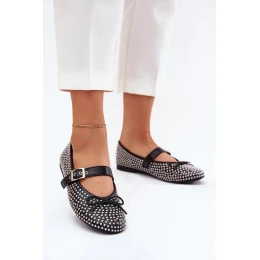 Dámske baleríny s mašľou a pásikom Zdivisa - čierne