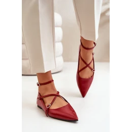 Baleriny Damskie Z Noskami W Szpic I Przeplatającymi Się Paskami Bordowe Violra