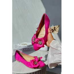 Damskie Eko Zamszowe Baleriny Z Kokardą I Broszką Fuksja Satris