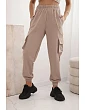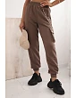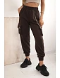 Dámske bavlnené cargo nohavice s vreckami a retiazkou hnedej farby