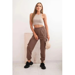 Dámské bavlněné cargo kalhoty s kapsami a řetízkem mocca