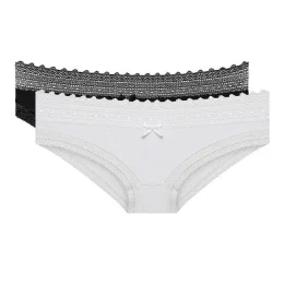 Dámske bavlnené nohavičky s čipkou 2 ks DIM SEXY FASHION SLIP 2x - DIM - čierna