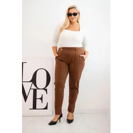 Dámské bavlněné kalhoty Plus Size s elastickým pasem camelové