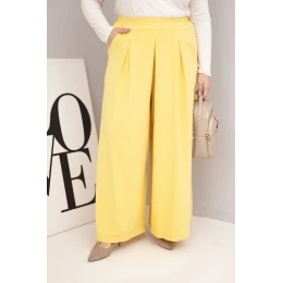 Štýlové a mimoriadne pohodlné dámske nohavice Plus Size so širokými, vzdušnými nohavicami sú ideálnou ponukou pre dámy, ktoré si cenia pohodlie a módny, mierne nadrozmerný štýl. Vďaka mimoriadne širokému strihu sa nohavice pri pohybe krásne pohybujú, čím vytvárajú efekt maxi sukne, a elastický pás zaručuje dokonalé prispôsobenie bez tlaku.