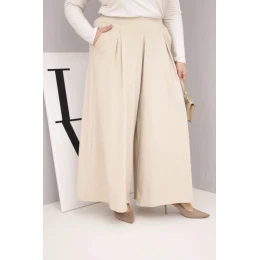 Stylové a nesmírně pohodlné dámské kalhoty Plus Size s širokým, vzdušným nohavicím jsou ideální nabídkou pro dámy, které si cení pohodlí a módního, lehce oversize stylu. Díky velmi širokému střihu se kalhoty krásně pohybují během pohybu, vytvářejí efekt maxi sukně, a elastický pas zajišťuje dokonalé přizpůsobení bez tlaku.