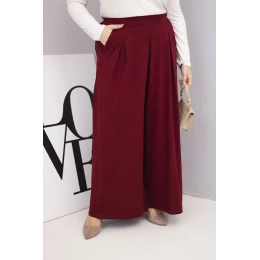 Dámské bavlněné kalhoty Plus Size s širokými nohavicemi a volným střihem bordové