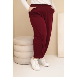 Dámske Plus veľkosť bavlnené nohavice s vysokým pásom voľné nohavice bordová