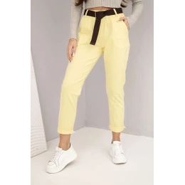 Dámské bavlněné kalhoty s páskem a ohrnutým lemem žluté
