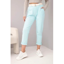 Dámske bavlnené nohavice s opaskom a ohrnutou nohavicou mätou